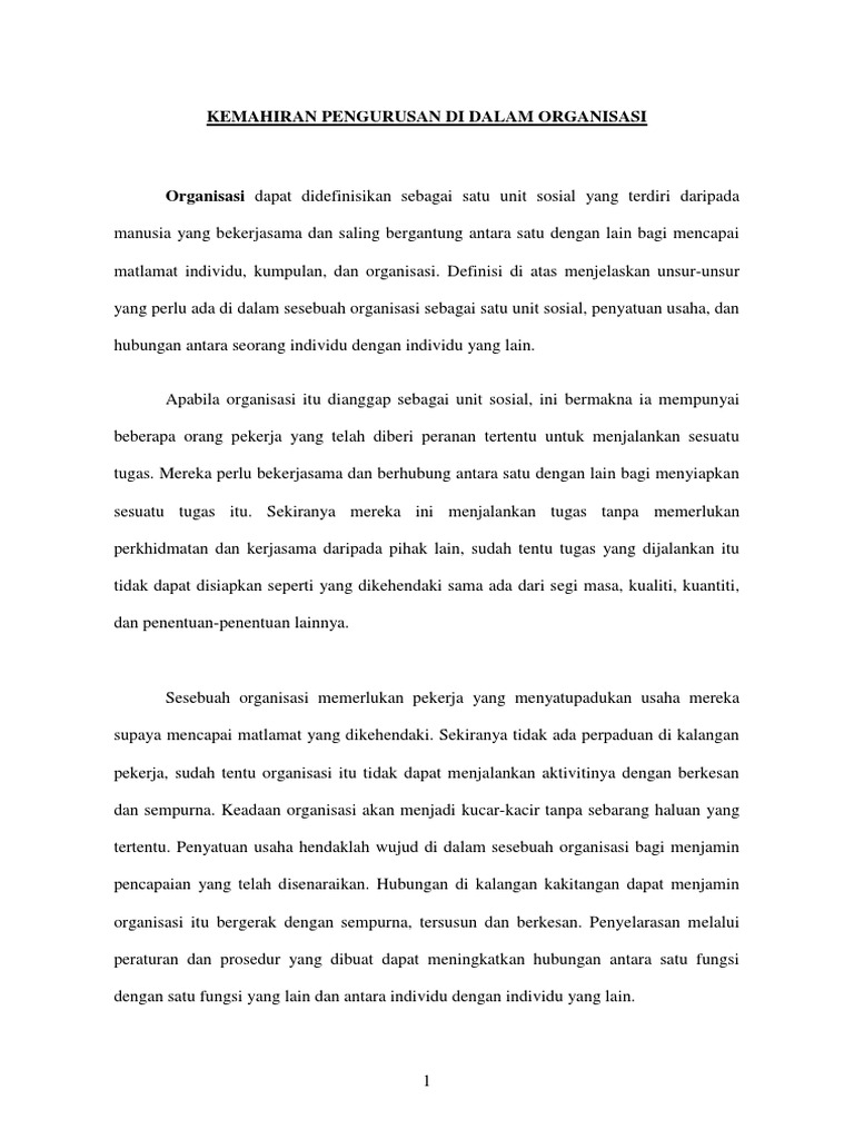 Kemahiran Pengurusan Di Dalam Organisasi Pdf